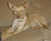 Some people mistake this color as fawn. The cream color is achieved by the presence of the Blue Dilution or D gene in the homozygous recessive form (dd). It dilutes brown eumelanin to blue, and red to cream. This recessive gene has a diluting effect on both eumelanin (black/brown) and phaeomelanin (red/yellow). |