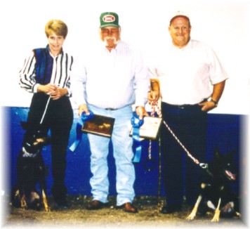 Our DogsWindrush Kelpie Stud breeds dogs only when a dog is needed to work on the farm. Dogs are required to work both cattle and sheep. The type of work required of the dogs is barn, stall, barn lot, chute, trailer loading and pasture work. Conditions vary from sticky deep mud to ice and deep snow with extended periods of below zero temperatures. Windrush is a closed stud and only breeds to those dogs that have been bred by them and to a minimal number of approved outside bitches. Reference Sires and Dams*Clovaville Oak (Liscannor Huck x Clovaville Nimble) Oak was imported in 1982 from Bruce Browning's Clovaville Kelpie Stud, Wollombi, New South Wales, Australia. He was a tough dog with tremendous ability. His pedigree can be found in many Kelpies in the United States. He died November 2, 1996. Windrush retains a daughter, son, granddaughter and grandson. *Scoriochre Emma II (Scoriochre Gunga x Scoriochre Georgie Girl) Emma was imported from John Gedye, Scoriochre Kelpie Stud, Victoria, in 1983. She was a stylish worker and our original brood bitch. She, too, can be found behind many good Kelpies across the United States. She died in June 1996. *Scoriochre Jim III (Wundurra Mister x S/Bred O'Bree's Sadie) Jim came to the United States with us in 1988. He was bred by John Gedye and was a Barambogie Mack grandson. His breeding included the Liscannor and Horton lines. He was an exceptional working dog with calming influence on his stock and an uncanny ability to read his stock correctly. Jim won the Working Kelpies, Inc. National Trial 3 times. Jim worked both cattle and sheep. He died June 30, 1998. Windrush retains one daughter and three sons. *White's Chocko (Liscannor Marco x White's Tally) Chocko arrived in the United States in 1988 at the age of 8. She was bred by John White, Nyngan, New South Wales, Australia. She spent most of her working life with Ray Wilson doing station work and winning and placing in sheep dog trials. She possessed tremendous intelligence and patience. She had eye, power and style. *Capree Busy (Joe's Pride x Capree Touch II) Busy was imported into the United States in 1996. She was bred by Chris Stapleton, Capree Kelpie Stud. Joe Attenborough had Busy and worked her on a sheep station that also had some cattle. Busy won and placed in numerous trials. She died in May 1998. Windrush Sires and DamsCopyright 2000 Windrush Photo White's Scout III